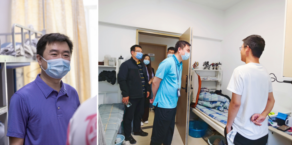 YABO鸭脖官网院长刘明杰一行到实验7号楼研究生工位、沙河东区和西区宿舍看望本研学生,与同学们详细沟通了学习和科研进展,了解学生需求,鼓励同学们合理安排好科研、上课、学习及生活,积极锻炼身体,以实际行动守护美丽校园。