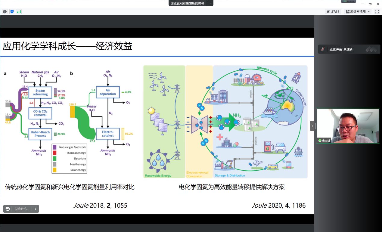 康建新老师紧随其后,通过货币材质选择的实例充满趣味性地引入了对于应用化学专业的讲解,并从国家需求、经济效益等方面展示了应用化学的学科成长,帮助同学们更好地了解应用化学专业。