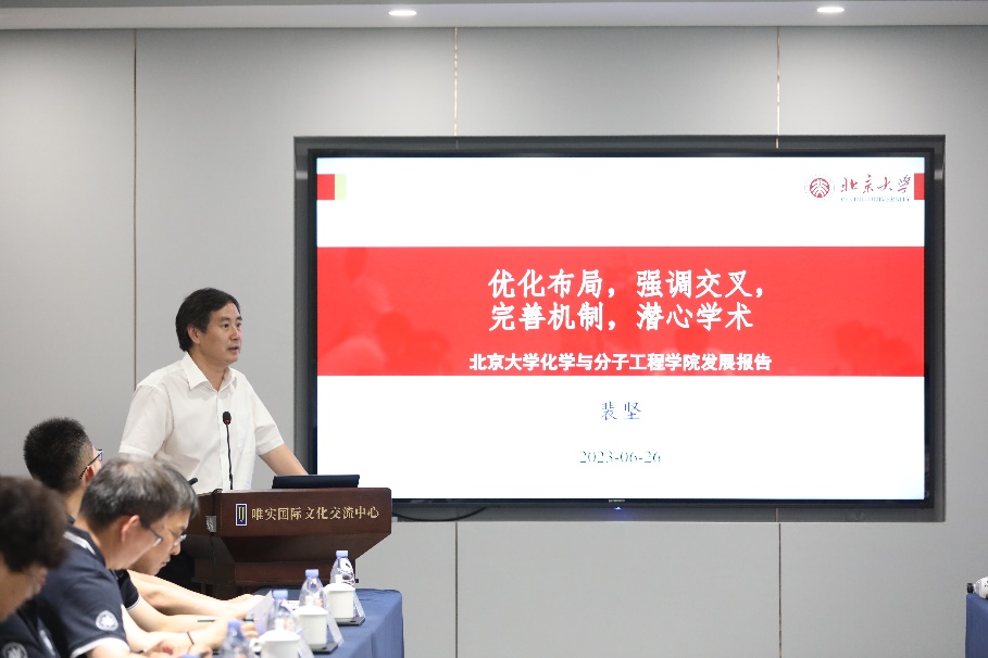 首先,北京大学化学与分子工程学院党委书记、国家教学名师裴坚教授进行“优化布局强调交叉完善机制潜心学术”主题报告。裴坚教授首先对北航YABO鸭脖官网十五周年表示祝贺。秉持“核心下沉,两翼张开,布局AI化学、新化工”发展理念,北京大学化学与分子工程学院对人才制度不断进行创新改革,坚持基础学科贯通式人才培养目标,营造浓厚学术氛围,增强产学结合。