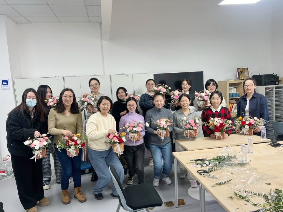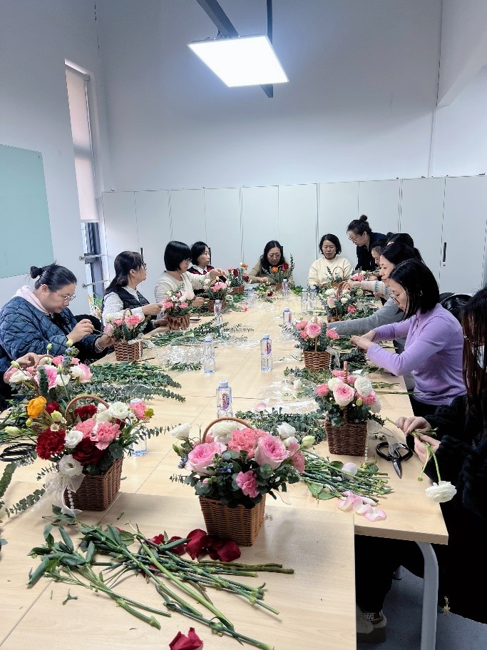 插花活动不仅是一场艺术体验,更是一份暖心的节日礼物,表达对女性教职工的关怀与敬意。参与教师纷纷表示:活动让我们在忙碌的工作中放松身心,感受到学院大家庭的温暖,也激励我们以更饱满的热情投入教育事业。