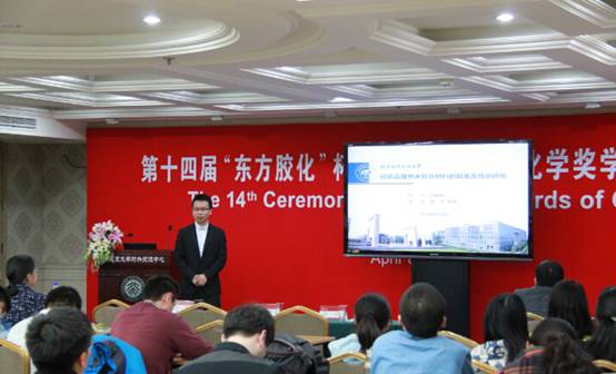由北京东方德菲仪器有限公司赞助的第十四届“东方胶化”杯全国胶体与界面化学研究生奖学金颁奖仪式于2016年4月8日在北京大学英杰交流中心第二会议室举行。经专家评审、复议后,鸭脖官网化学与环境学院郭林教授指导的博士生赵赫威同学荣获全国二等奖。赵赫威同学的获奖工作为新型轻质高强材料的制备及特性研究,他在国际上首次实现了超薄非晶氧化铝的制备以及三维多级仿贝壳体系的构建,相关工作相继发表在国际材料领域权威期刊《Advanced Materials》上(Adv. Mater. 2016, 28,2037; Adv. Mater. 2016, DOI:10.1002/adma.201600839),得到了广泛关注。