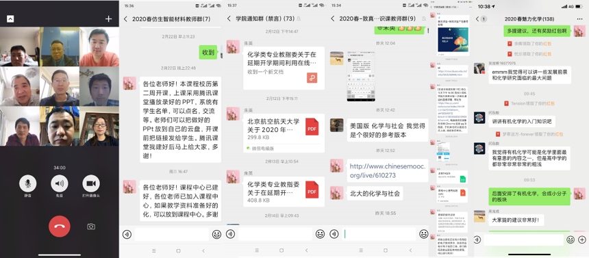 从腾讯课堂极速版、普通版、各种网络平台的体验和学习,从课程中心、北航云盘、百度云盘、微信群、QQ群等各种交流沟通方式的调研和试用,从电脑、手机、手写板、ipad甚至到一个小耳麦、摄像头的调试,无不凝聚着老师们对于教学工作一丝不苟的态度。经过了第一周的网络教学实战,看到课程中心的点击率不断攀升,看到学生们上课的反馈结果,不分节假日、不分白天黑夜的工作没有白费,朱英教授和全体授课教师一样感到一份欣慰,但她深知这才是开始。总结第一周的教学,要想使课程有条不紊地顺利开展,并取得良好的教学效果,获得学生们的认可与好评。学院的各门网络课程教学还需要不断的改进和优化。