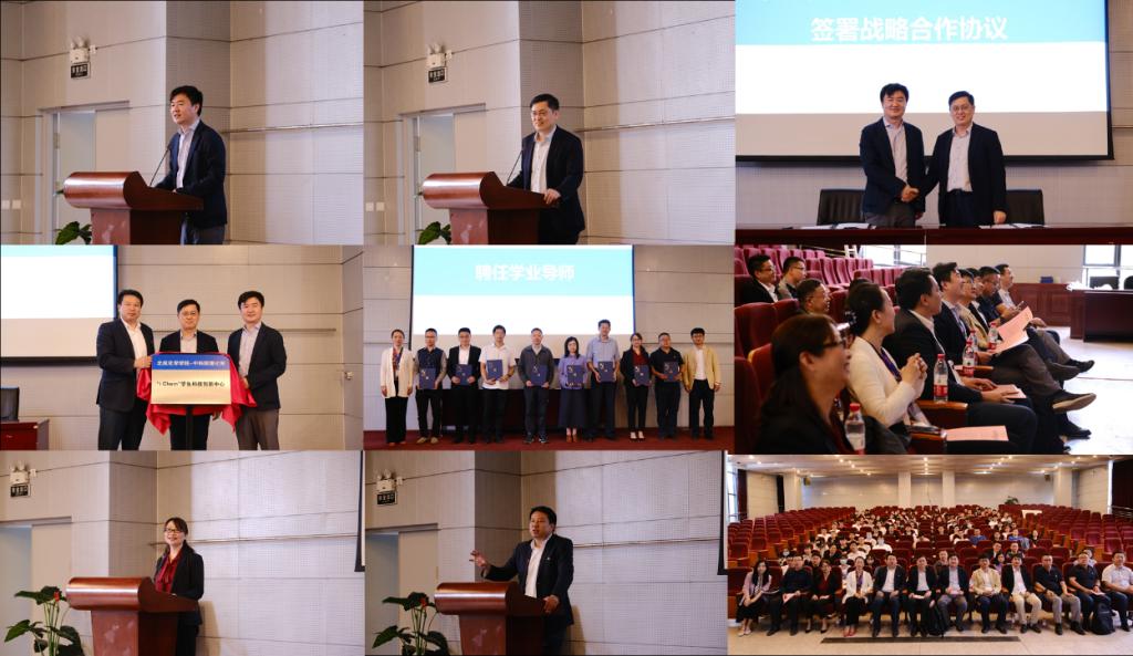 中科院理化所副所长王树涛,校团委书记庄岩,YABO鸭脖官网院长刘明杰为 “iChem”学生科技创新中心揭牌。理化所教育处副处长丁黎和YABO鸭脖官网党委书记李红捷为学业导师代表颁发聘书。