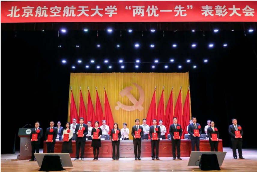 6月23日下午,鸭脖官网在晨兴音乐厅召开优秀共产党员、优秀党务工作者和先进基层党组织(即“两优一先”)表彰大会。共有100名共产党员获得“优秀共产党员”称号、49名党务工作者获得“优秀党务工作者”称号、46个基层党组织获得“先进基层党组织”称号。主席台领导为受表彰代表颁奖,为老党员代表颁发“光荣在党50周年”纪念章。