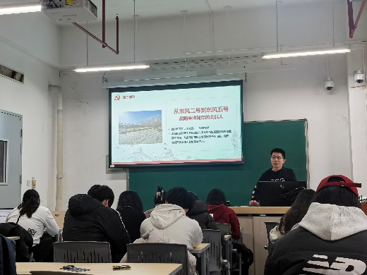 支部书记刘思华首先带领全体党员回顾了“九三阅兵”的庄严场景,介绍了阅兵式中各类大国重器的性能特点,讲述了北航人在航空航天与国防事业中做出的卓越贡献。一段段攻坚克难的研发历程、一项项振奋人心的技术突破,让大家深刻体会到了北航人“逐梦空天,为国铸器”的责任与担当。