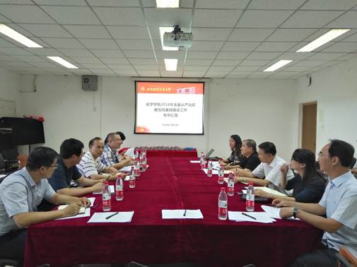 7月11日下午,由纪委书记何新洲,纪委副书记、纪委办公室主任、监察处处长武立勋,纪检员方滨艳,纪检员何述义,党风廉政监督员王健和谭立组成的检查组对鸭脖官网全面从严治党暨党风廉政建设工作进行了检查。鸭脖官网党委书记李红捷,常务副院长郭林,本科教学副院长朱英,化学系主任高秋明,党委委员杨青林及学院教工党支部书记、青年教师代表等参加了汇报会。
