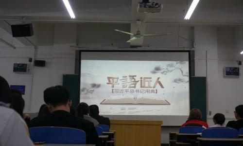 活动中大家集体观看了《平“语”近人——习近平总书记用典》视频。视频以习近平总书记一系列重要讲话中所引用的古代典籍和经典名句为切入点,旨在推动习近平新时代中国特色社会主义思想的生动阐释与广泛传播。大家集中学习了习近平总书记“爱民情怀,以人民为中心”的新时代特色社会主义思想。观看结束,学院党委副书记刘益星对大会做出了总结,要求广大学生干部认真学习,用习近平新时代中国特色社会主义思想为指导,努力工作,刻苦学习。