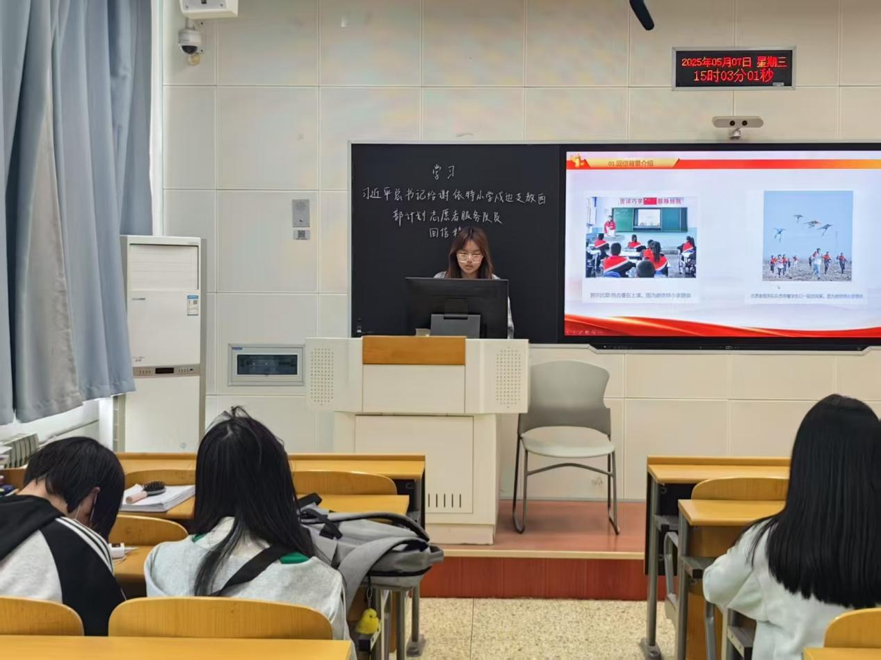 活动期间,各团支部创新学习形式,力求让回信精神在同学们心中落地生根、开花结果。23级统计二班、24级统计二班等团支部开展主题宣讲活动,以真挚的情感、详实的内容,让同学们深刻体悟到当代大学生肩负的时代重任。同学们结合自身实践经历,踊跃分享心得体会,假期参与“一起云支教”“三下乡”“返家乡”社会实践活动的经历成为热议话题,他们用亲身经历展现新时代青年胸怀家国、服务人民的崇高价值追求,彰显出新时代青年的责任担当。 23级应统计一班、24级应统二班等团支部采用分组讨论与现场演绎相结合的方式,深入剖析西部计划中的典型案例。讨论环节中,同学们紧扣回信精神,各抒己见、思维碰撞,一致表示要刻苦钻研专业知识,全方位提升自身能力素养,秉持顽强拼搏、不懈奋斗的精神,在中国式现代化建设的伟大征程中勇挑重担、积极作为,以实际行动实现人生价值。