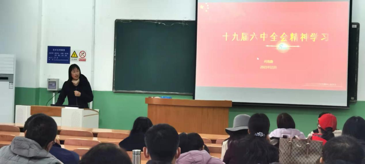 11月18日,数学与统计学学院召开教职工政治理论学习会,传达学习了党的十九届六中全会精神,会议由学院党委书记祃海霞主持,学院党委委员、全体教职工参加。