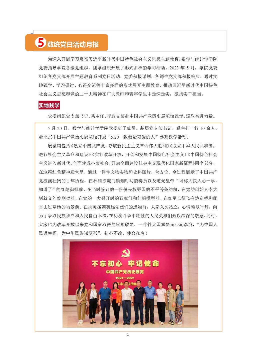 5月20日,数学与统计学学院党委班子成员、基层党支部书记、系主任一行10余人,赴北京中国共产党历史展览馆开展“5.20—致敬最可爱的人”参观践学活动。