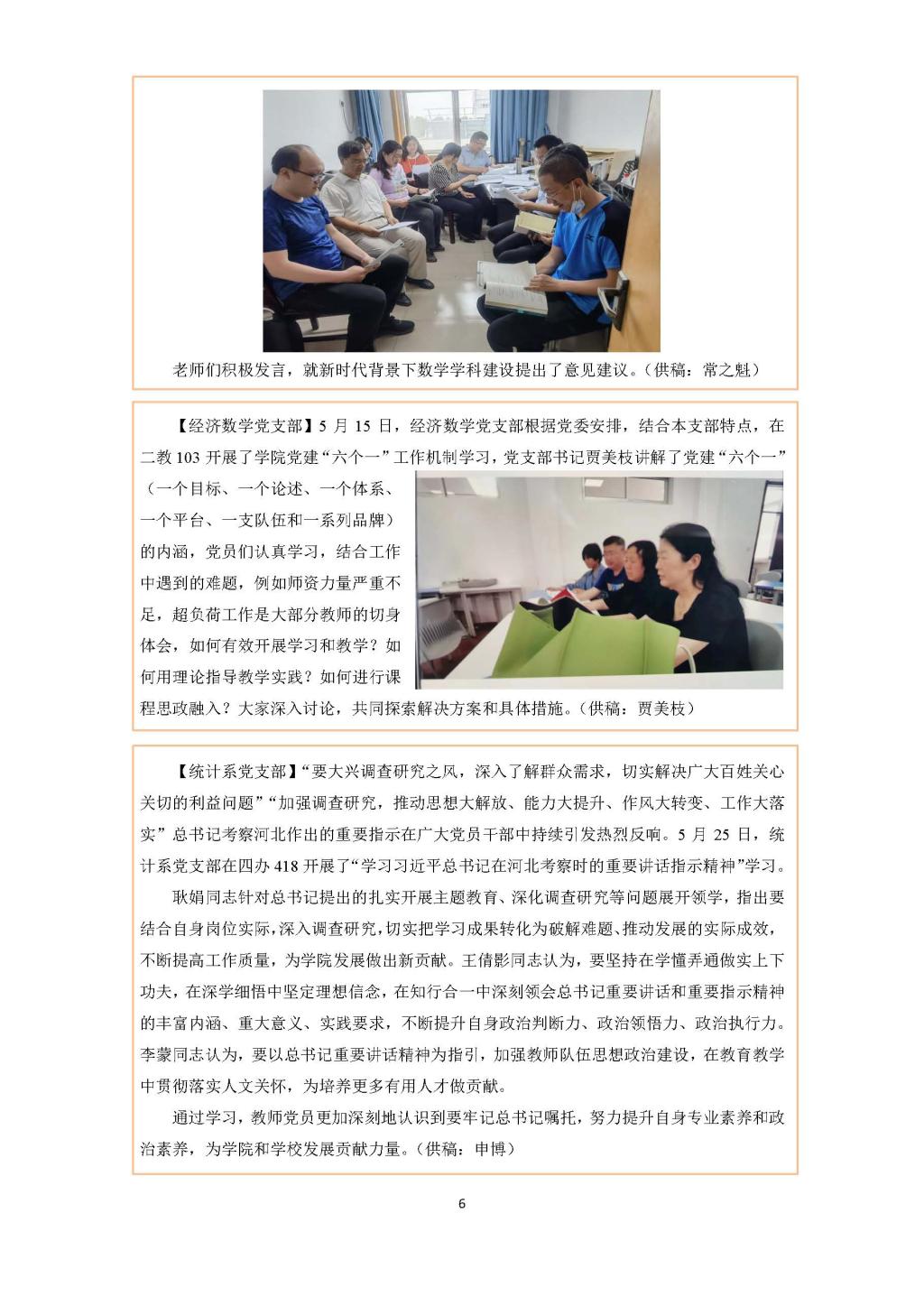 【统计系党支部】“要大兴调查研究之风,深入了解群众需求,切实解决广大百姓关心关切的利益问题”“加强调查研究,推动思想大解放、能力大提升、作风大转变、工作大落实”总书记考察河北作出的重要指示在广大党员干部中持续引发热烈反响。5月25日,统计系党支部在四办418开展了“学习习近平总书记在河北考察时的重要讲话指示精神”学习。