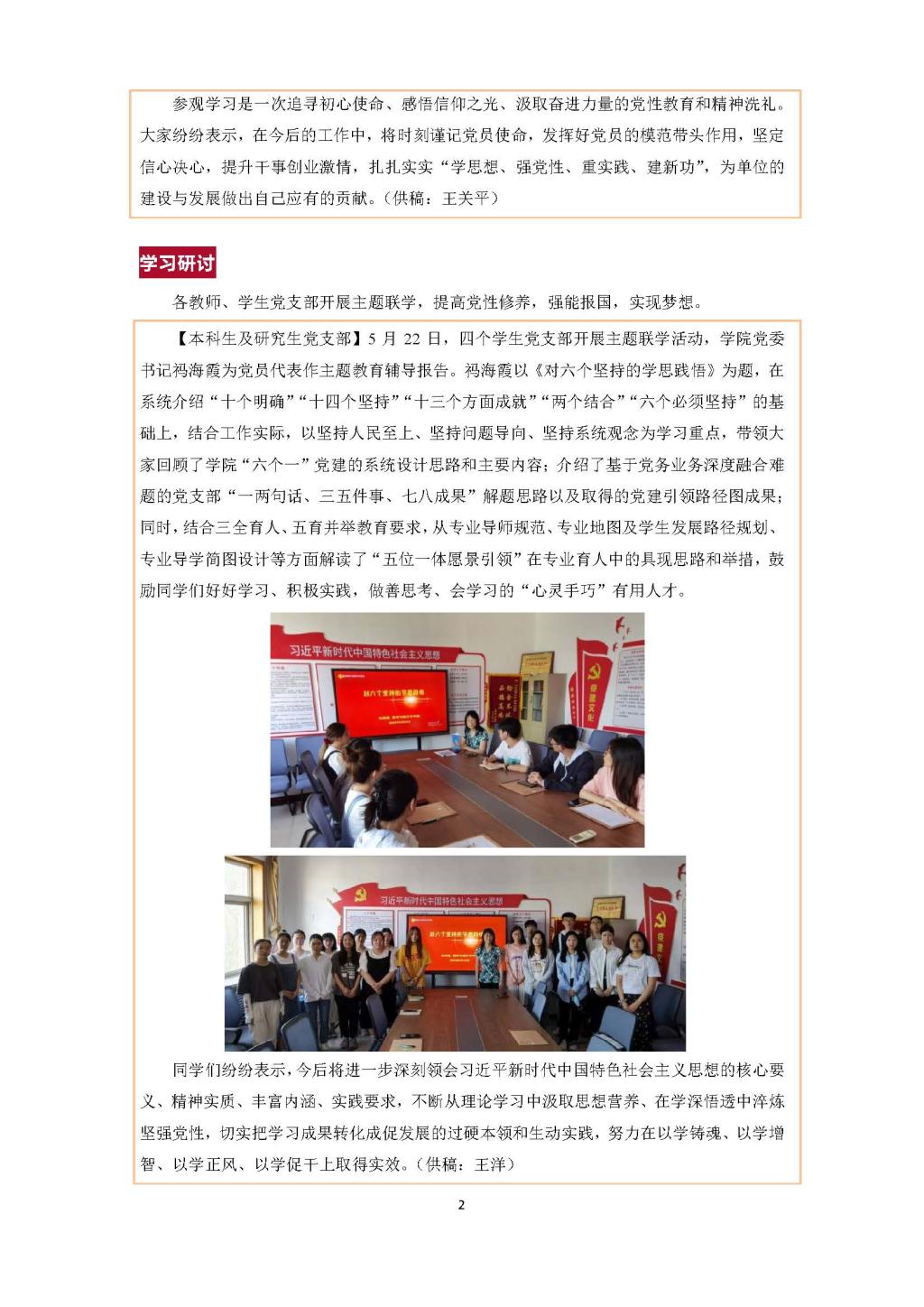 各教师、学生党支部开展主题联学,提高党性修养,强能报国,实现梦想。