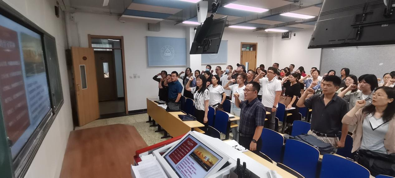 祃海霞通报了本年度“师德师风建设月”活动方案,回顾了学院2024年上半年盘点情况,重温了学院“六个一”党建品牌之“一支好老师队伍”、教师职业行为十项准则、教育家精神等内容,并带领全院教师重温了教师入职誓词。