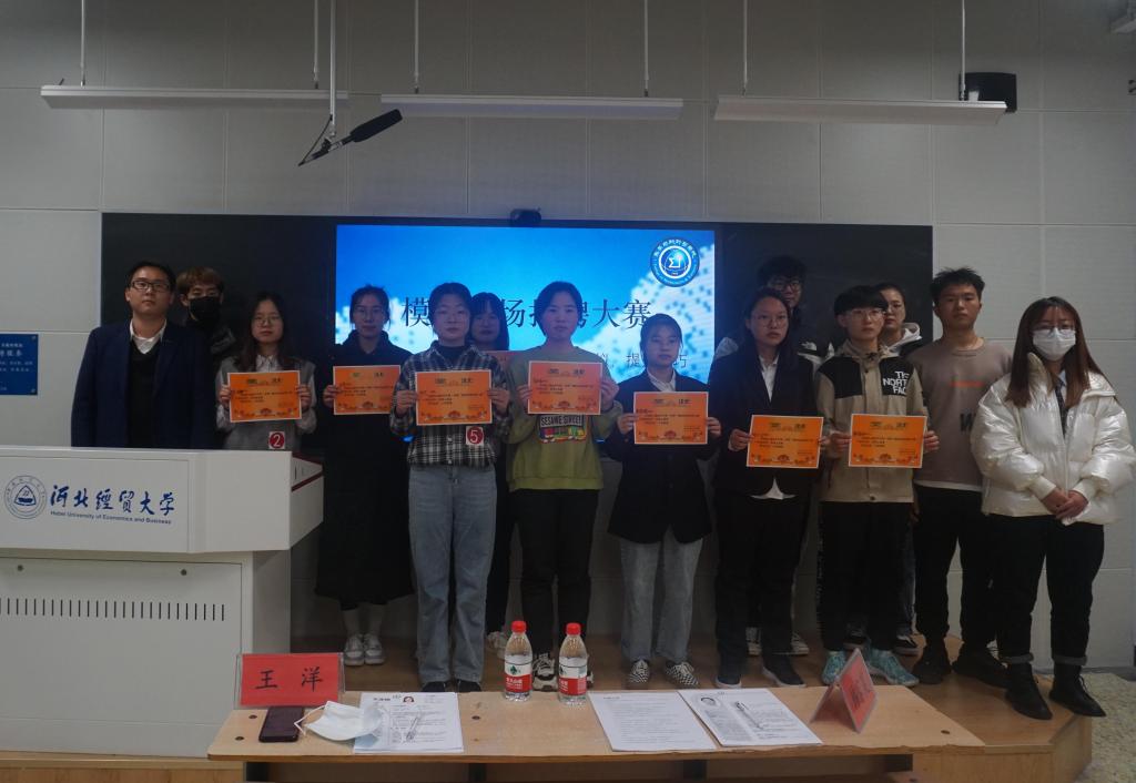大赛开始,选手依次上台作个人介绍,分别从求职意向、兴趣爱好、所获荣誉、实践经历等方面进行详细说明。随后,由评委团向选手提问并打分,选手们淡定自若、侃侃而谈。经过激烈角逐,最终2019级应用统计学专业王亚楠获得特等奖,2019级数学与应用数学专业朱紫、2019级统计学专业李德麟获得一等奖,2021级统计学类孙汇、曹杉杉、2019级应用统计学专业李亚伟获得二等奖,2021级统计学类韩星雨、顾之凡、靳佳璐获得三等奖。
