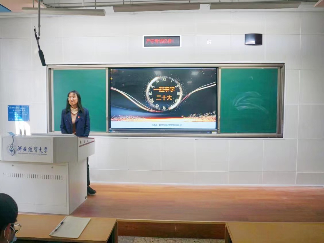 为更好地学习宣传贯彻党的二十大精神,11月7日下午,学院党委书记祃海霞受邀做党的二十大报告解读专题党课辅导讲座,学院第53期入党积极分子同学、各年级团支书以及学院团委成员参加。