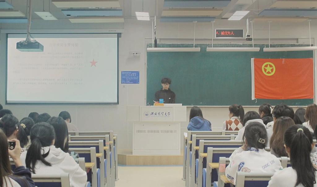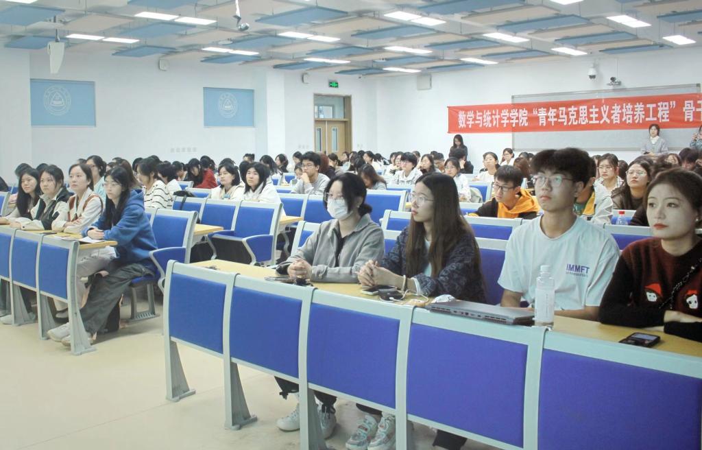 10月27日,数学与统计学学院于北三教B201教室举行第十五期“青年马克思主义者培养工程”骨干培训班第六课,院团委实践竞赛部部长谢晨睿讲授第六课,全体青马班成员参加。