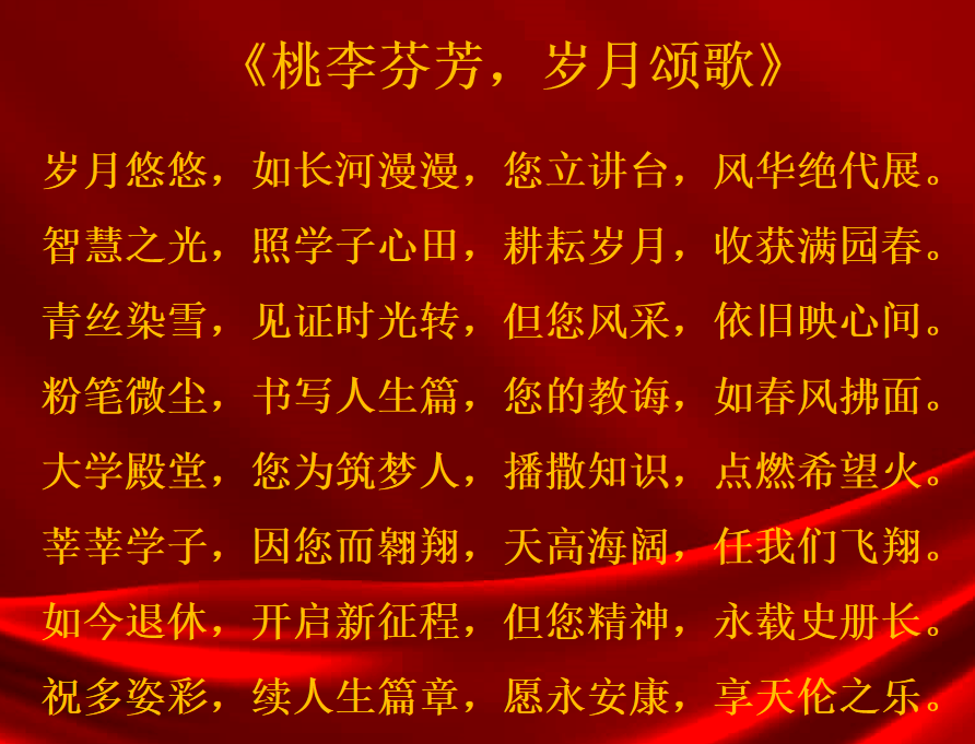 学生们朗诵了诗歌《桃李芬芳,岁月颂歌》,表达了对于荣休教师的感恩与感激之情。