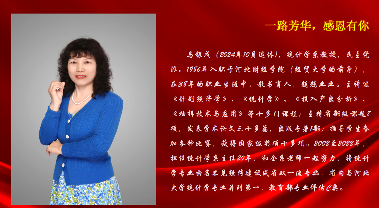 仪式最后,祃海霞做总结讲话。她代表学院党委、全体师生向各位光荣退休的老师致以节日的美好祝福,对大家长期以来的辛勤耕耘和无私奉献表示诚挚的感谢。她希望各位荣休教师能够常回学校看看,一如既往地关心、关注和支持学院建设发展,多提宝贵意见。一日统数人,终生统数人。接好、传好教书育人接力棒,是所有统数人的责任。