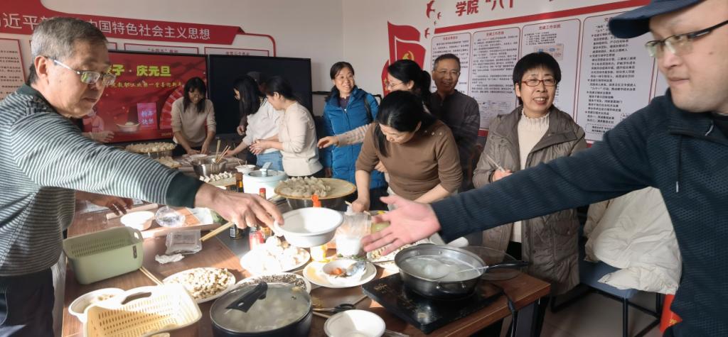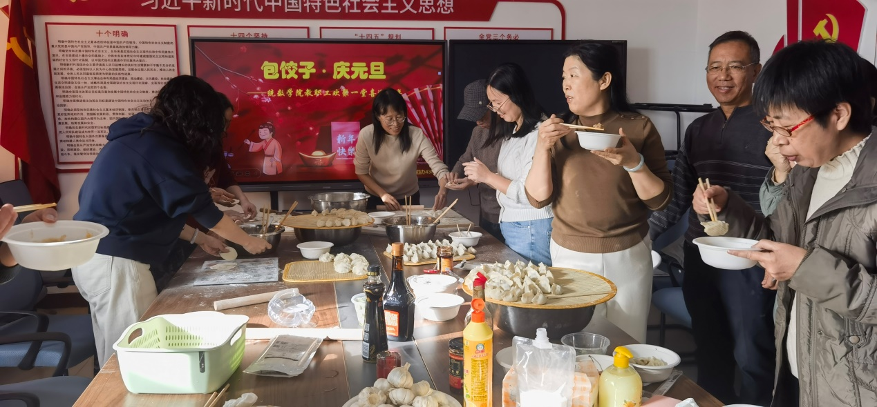 2025年元旦来临之际,必赢国际437官网举办“包饺子、庆元旦”活动,欢聚一堂,喜迎新年的到来。12月30日,活动场地和一应用品用具准备到位,在职教工和退休教师代表们积极参与,齐心协力,欢声笑语此起彼伏,热闹非凡。