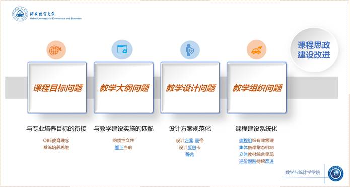 祃海霞从当前课程思政示范课建设中存在的课程目标、教学大纲、教学设计、教学组织等四方面普遍性问题出发,提出课程目标要落实OBE教育理念和系统培养思维,做好与专业培养目标的贯通衔接;教学大纲以及教学设计方案作为纲领性教学文件和教学顶层设计,要注重系统推进和设计方案的规范化、标准化,同时,整合学院原有的《课程思政教学设计及反思卡》和部分课程的方案设计呈现,推出课程思政教学设计方案模板;教学组织要遵循课程建设系统化思路,努力实现课程组织有效管理、集体备课常态机制、立体教材综合呈现、评价跟踪持续改进。《微积分》《统计学》课程思政示范课负责人王玲书、张良勇老师,结合日常的课程教学和本次认证申报经过,就课程组组建、课程思政建设做了交流分享,老师们深受启发,受益匪浅