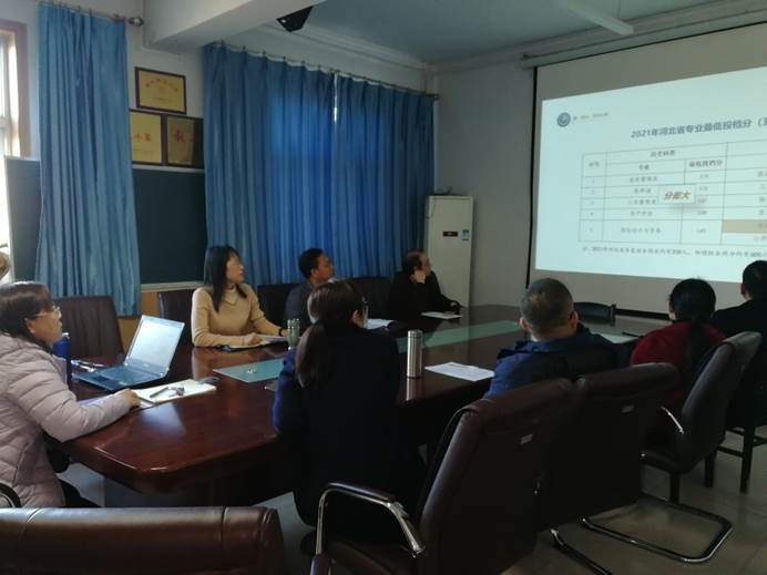 王玲书介绍了2021年学校的整体招生情况,分析总结了学院近两年的招生情况;结合2021年学院四个专业的本科生就业数据,提出了完善学院招生就业工作的建议。王玲书还介绍、分析了学院近五年四个专业的教学成果、课程建设等具体情况。