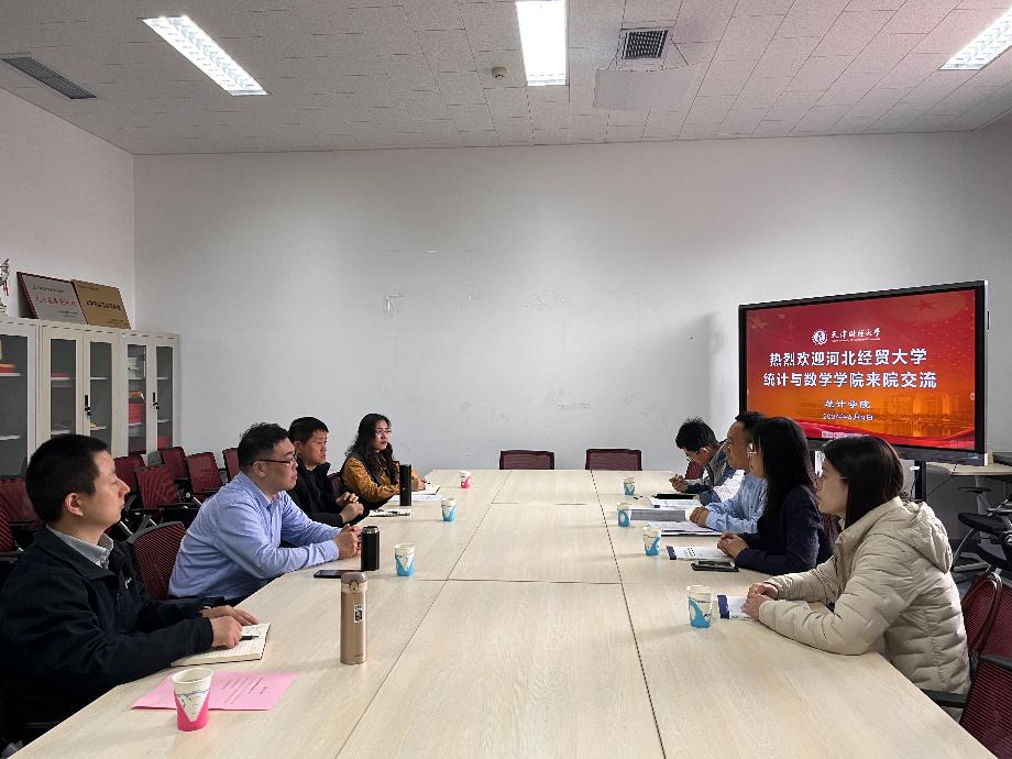 4月9日,必赢国际437官网党委书记祃海霞、院长闫亮、统计学系副主任张子贤、陈华超等一行赴天津财经大学统计学院,就一系列统计学科发展议题与天津财经大学统计学院党委书记王健、院长杨贵军等教师展开深入的调研交流。