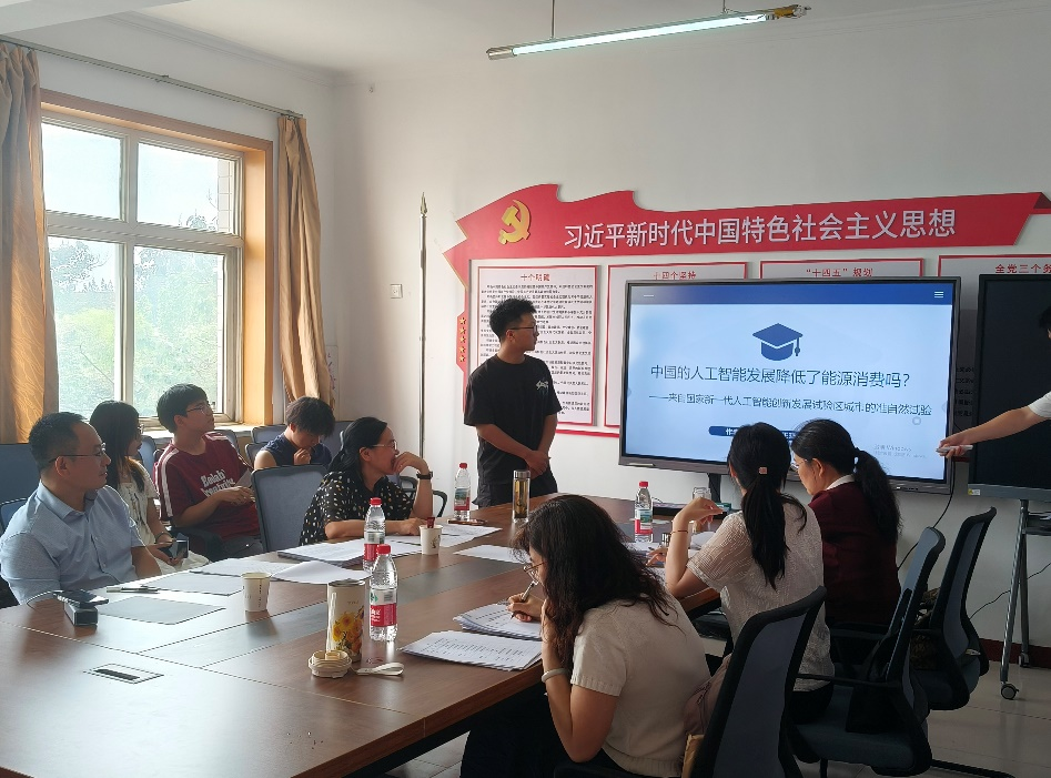2023级应用统计专业崔帅作《中国的人工智能发展降低了能源消费吗?——来自国家新一代人工智能创新发展试验区城市的准自然试验》报告。