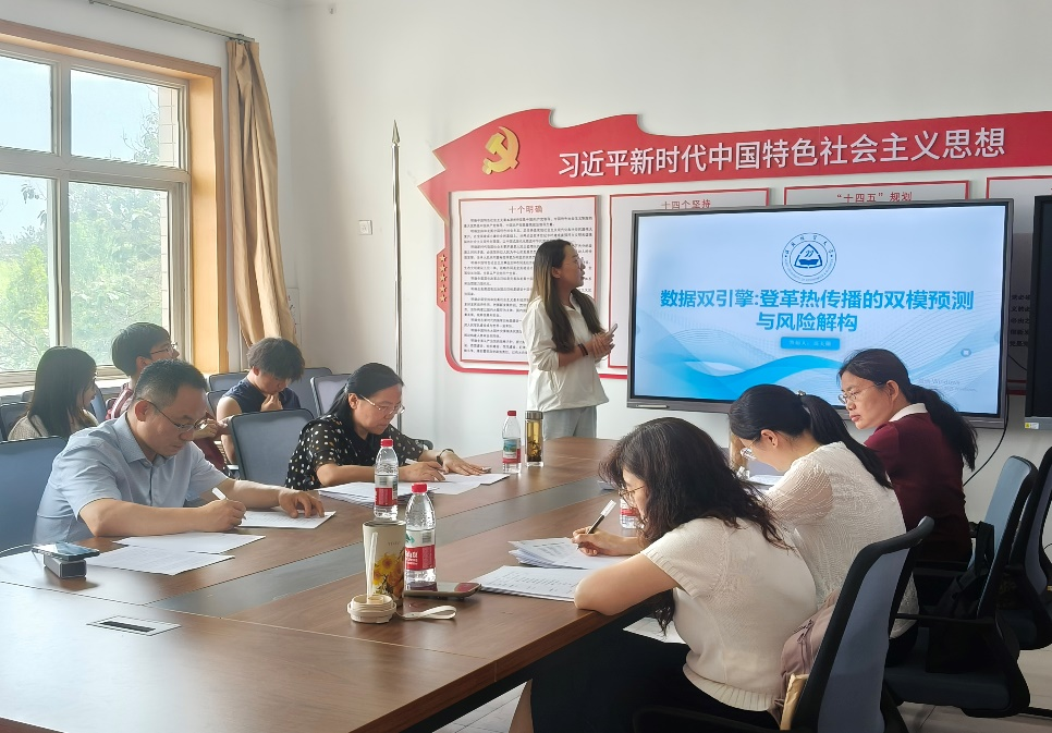 2023级应用统计专业叶盼盼作《数据要素市场化赋能数字经济新质生产力的发展水平测度和障碍因子识别》报告。