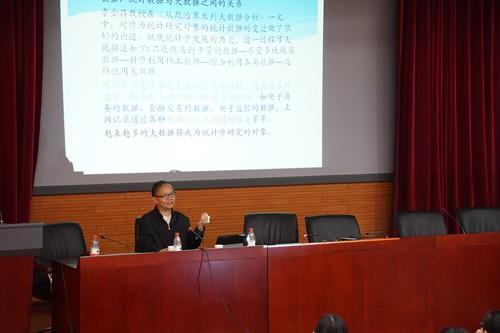 学校武义青副校长主持报告会并隆重介绍,曾五一教授是教育部统计学类专业教学指导委员会主任委员,厦门大学统计学科学术带头人、博士生导师。曾教授在报告中指出,大数据的学科建设以统计学等现有学科为基础,不仅专注于数据科学与工程的发展,将来更应强调与经济学、管理学、医学、生命科学、社会学和新闻学等众多学科领域的交叉融合。大数据的人才培养应当面向市场和产业需求,不仅着重培养研究型和技术型人才,更应通过组建跨学科、跨领域的教学和科研师资队伍,为相关学科领域大力培养应用型的综合素质人才。大数据学科的建设目标不仅在于获取基础研究和人才培养的硕果,还应着重于科研技术成果的转化,催生一大批造福于国民经济生活的产业应用成果。在互动环节,曾教授对师生们的提问进行了睿智的解答。