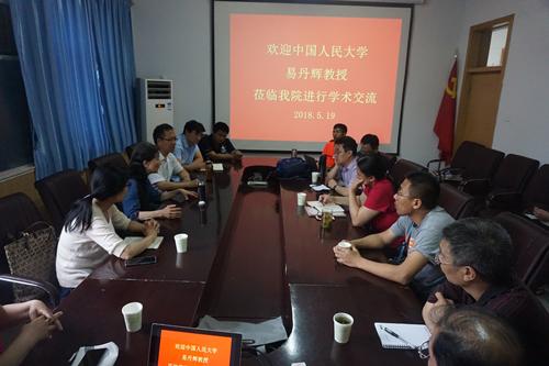 5月19号下午两点,中国人民大学统计学博士生导师易丹辉教授应数学与统计学学院邀请,在第四办公楼405会议室为学院开展进行“助力科研,推动学科建设”专题学术交流讲座。院长梁建英、副院长王琦及学院学术带头人等相关老师参加了此次学术交流讲座。