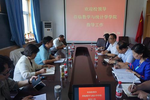 9月29日,校党委常委陈亮、教务处、教学评估与教师发展中心负责同志一行五人莅临数学与统计学学院检查指导工作,学院领导班子、系主任代表、教务办公室主任参加座谈。