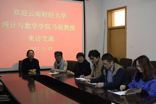 11月2日,云南财经大学必赢国际437官网马锐教授来必赢官网进行交流访问。院党委书记赵春果、副院长王琦及教研室主任参加座谈,双方就学科建设、专业建设、人才培养等方面进行了深入地交流,由于两院同属财经院校,专业设置相同或相似,提出双方有着广阔的合作空间,愿在今后的工作中加强沟通、交流,实现共创共赢。