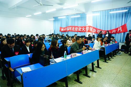 11月20日下午,数统学院在北三教102举办了“职来职往、赢在职场”校园模拟职场招聘大赛。学院党委副书记刘益星、北京课观教育河北区域负责人贾磊老师以及辅导员高会颖、张华观看比赛并担任评委。