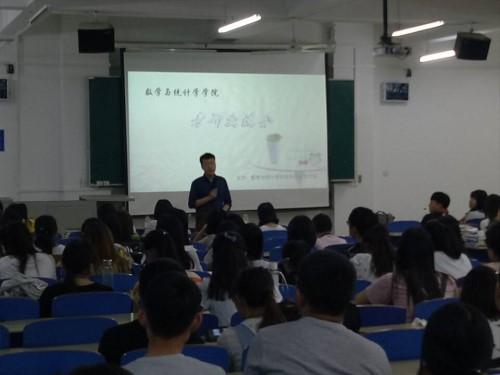 5月12日,数学与统计学学院于B教101举办了考研及经验交流会,辅导员王关平老师、曲博老师和百余名考研意向学生参加会议。