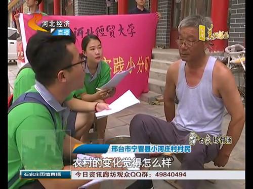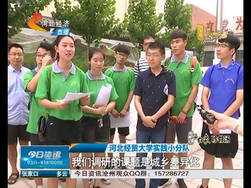 7月11日河北卫视经济频道播出的《今日资讯》栏目对数统学院赴宁晋社会实践小分队在贾家口镇小河庄村的“精准扶贫户识别”与“城乡老龄人口生活质量差异化研究”实践调研活动进行了报道。