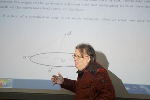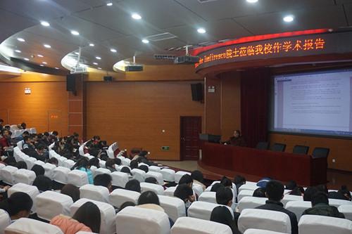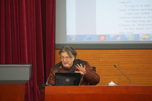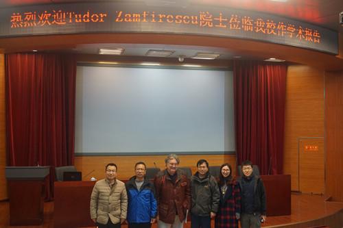 Tudor Zamfirescu教授第一次来必赢官网,被美丽的校园风景所吸引,并对数统学院的热情接待表示感谢。 Tudor Zamfirescu教授首先介绍了最新研究课题---圆盘被笼子(即三维空间多面体的1-骨架)持住的问题,他利用风趣幽默的语言,介绍了四面体笼子和五面体笼子可持住圆盘的数量问题研究,课题非常有趣,而且具有一定的实际应用价值。整场报告深入浅出,极大地开阔了师生视野,增加了同学们对数学学习的热情,同时对必赢官网数学教学与科研也有很大的启发与帮助。报告会后,同学们表示通过报告加深了对数学学科的认知,进一步明确了专业学习目标,将以更加积极的态度和饱满的热情投入到今后的学习生活中。