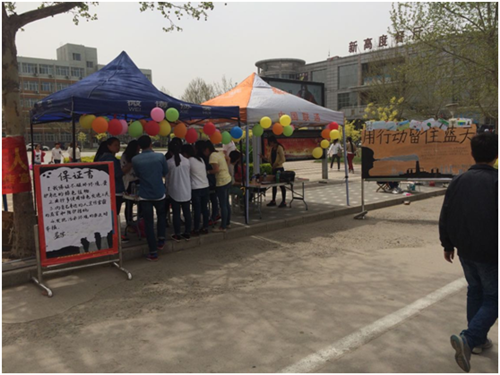 5月15日,数统学院在学校韶华路开展了以“用行动留住蓝天”为主题的抗雾霾宣传活动,呼吁大家从自身做起,保护环境,防治雾霾。石家庄市环保局机关有关人员一行6人亲临现场签名助阵,并对活动现场组织者给予了鼓励和赞扬。