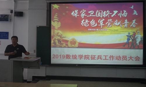 6月3日下午,数学与统计学学院在B教101举行2019年征兵工作动员大会。学院党委副书记刘益星,辅导员高会颖,16、17、18级全体男生参加。