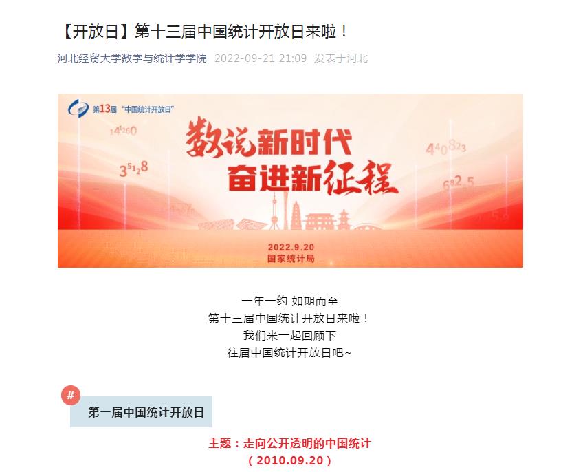 2022年9月20日,第十三届中国统计日来临之际,学院开展了系列活动。