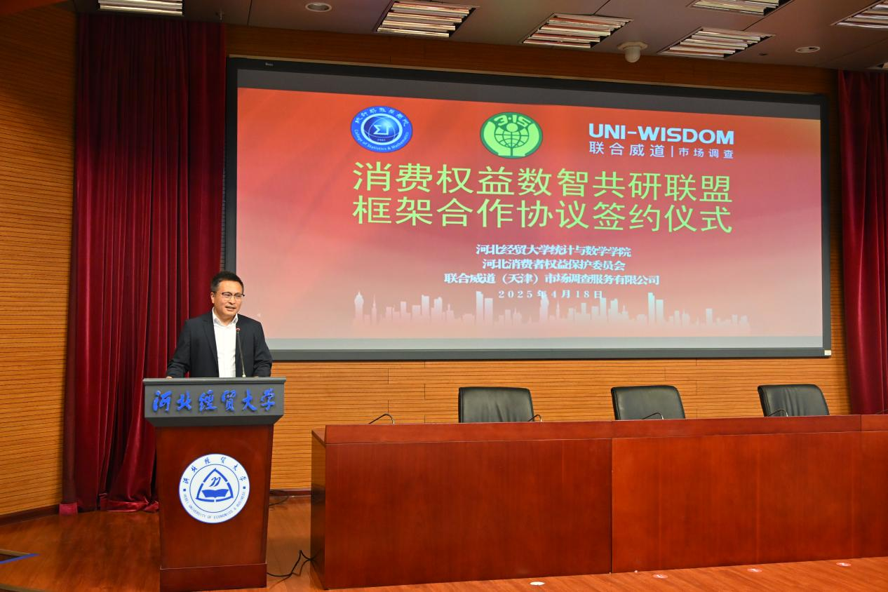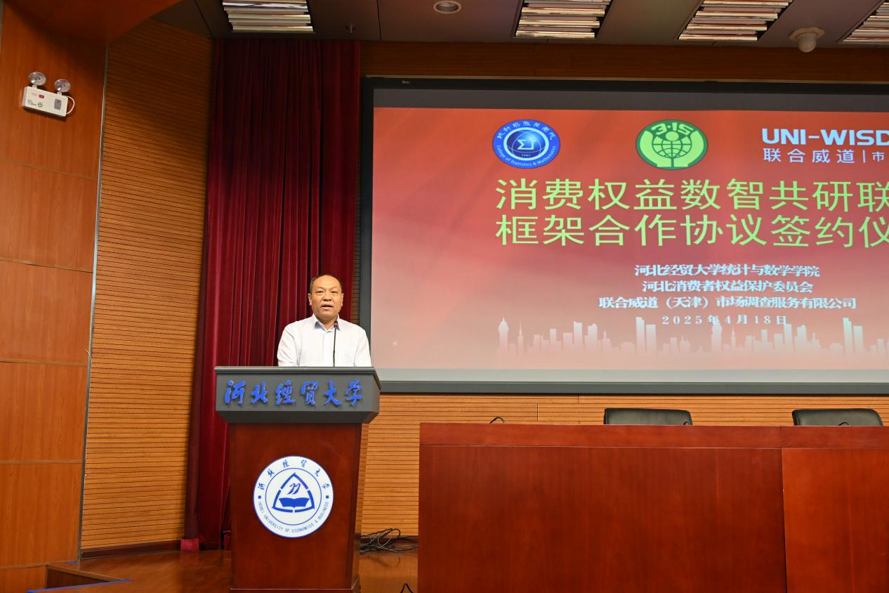 在领导致辞环节,王守用指出“消费权益数智共研联盟”符合新发展阶段消费者权益保护工作的新要求,也契合新时代AI智能新形势,旨在充分利用人才、科研、数据以及统计分析为消费者权益保护赋能,必将为消费者权益保护工作高质量发展注入新的生机和活力。祃海霞希望三方密切合作,在三个“共”字上做文章、做好文章,共启联盟新征程,一是共谋“真题真做”“研用结合”人才协同培育;二是共建实习实践新路径,既推动教育链、人才链与产业链、创新链的深度融合,又为区域经济社会发展注入活力,实现“教育赋能产业,产业反哺社会”的良性循环;三是共创消费调查新模式,把论文写在燕赵大地上、写进消费者的心坎里,携手助力消费提振、社会进步、人民幸福。刘恒超表达了对未来三方在“消保委命题、高校实践实习、企业指导”模式下深化合作、实现优势互补的愿景和展望。