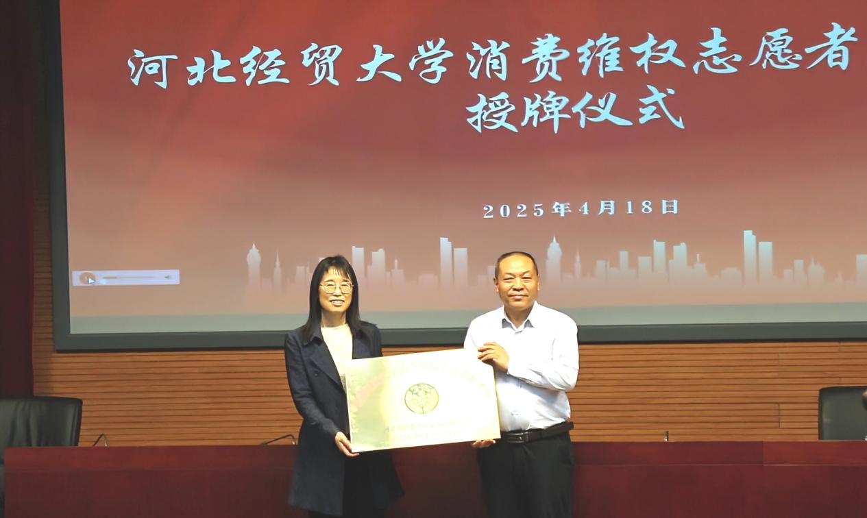 最后,王守用为必赢国际437官网授予“必赢国际437官网消费维权志愿者服务站”牌匾。该服务站作为石家庄高校首个消费维权志愿服务实践平台,将组织大学生志愿者开展消费科普宣传、维权咨询及社会调查等活动,助力学生将理论转化为服务社会的实际能力,为区域消费环境优化注入青年力量。