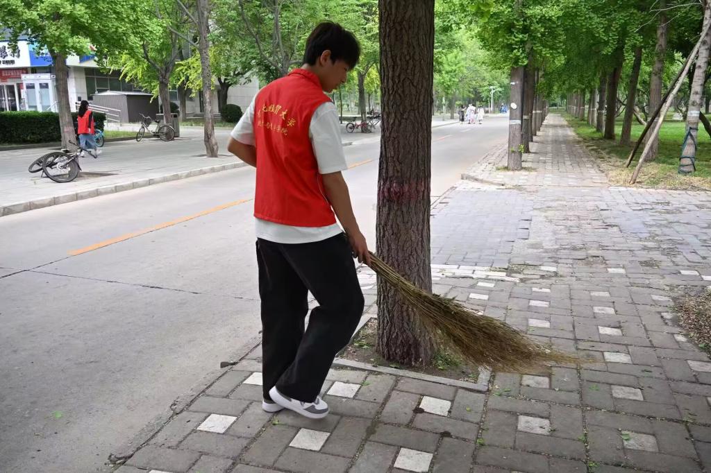 活动现场,同学们分工明确、热情高涨。图书馆前,志愿者仔细清洁每一处角落,用劳动美化学习环境;校园道路与绿化带中,大家手持工具,认真清理杂物,让校园焕发生机。劳动过程中,同学们深刻体会到环卫工作人员的辛勤付出,进一步增强了尊重劳动、珍惜成果的意识。