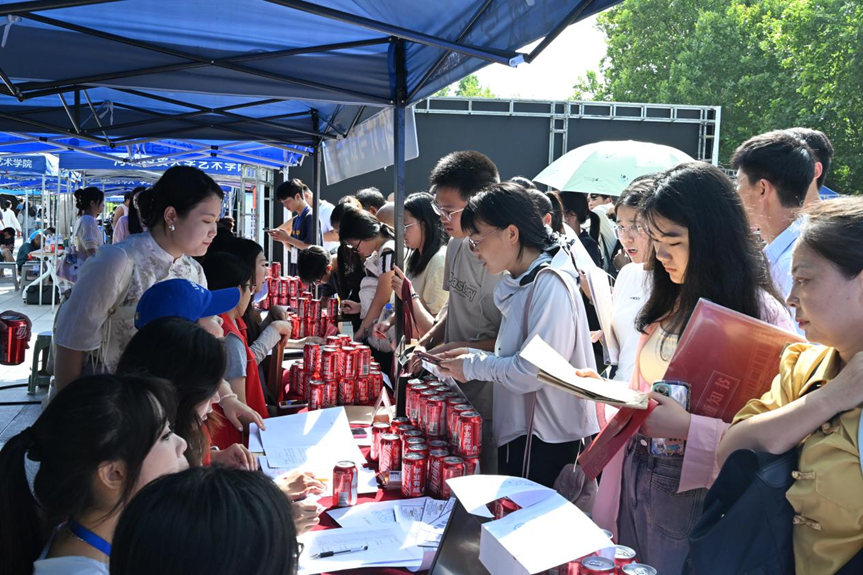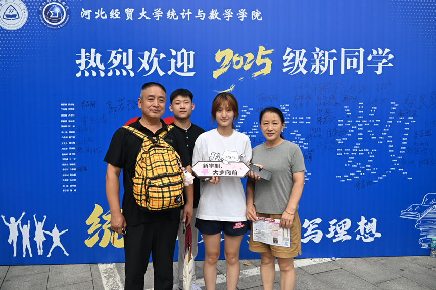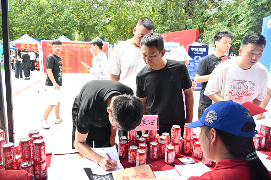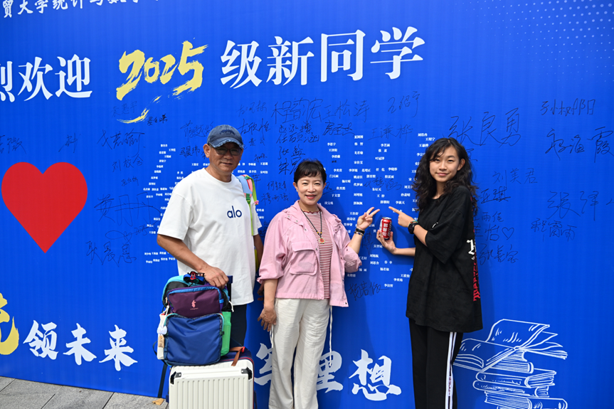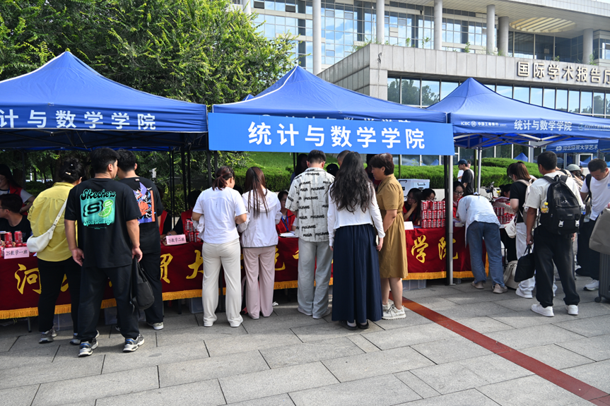 为让新生的入学体验更具仪式感与归属感,学院还精心设计了多项特色环节:专门制作的迎新背景墙前,新生们与亲友并肩合影,用镜头定格下大学生涯的第一张珍贵照片;由全体新生名字组成的“我爱统数”主题墙前,同学们纷纷驻足打卡,在找到自己名字的瞬间,深刻感受到“成为统数人”的归属感与幸福感。此外,学院还为每位新生准备了定制版可乐——瓶身印着新生专属名字与“学业有成”的美好祝福,将真挚期许融入饮品之中;同时贴心分发实用帆布包,为新生的校园生活提供便利,让每一份细节都承载着学院对新生的用心与关怀。