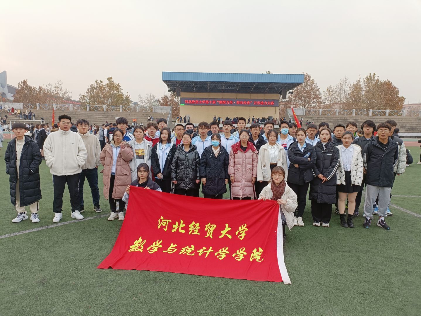为了使同学们的课余生活更加丰富,增强大家的凝聚力和竞争力,激发对体育锻炼的热情。必赢官网于11月27号下午12点45分于东操场举行了第十届万米接力大赛,数学与统计学学院的25名运动员和啦啦队参加此次比赛。
