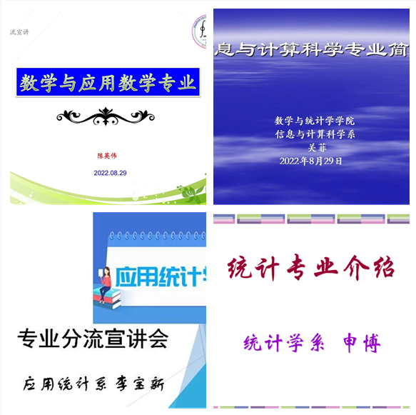 为帮助2021级同学更好地进行专业选择,明确未来的发展方向,做好学业和职业规划,数学与统计学学院于8月29日举行了数学类和统计学类两场专业分流线上宣讲会。出席宣讲会的有学院党委书记祃海霞、院长梁建英、副院长王玲书以及四个专业系党支部书记、系主任,2021级辅导员和全体同学参加。