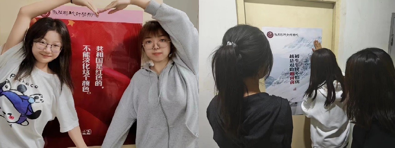 近日,必赢国际437官网数学与统计学学院把一张张用心制作的海报贴进大学生宿舍。“共和国是红色的,不能淡化这个颜色”“青年时代,选择吃苦也就选择了收获,选择奉献也就选择了高尚”“要敢于做先锋,而不做过客,当看客”……这一举措让大学生思想政治教育工作更进一步贴近大学生生活,融入大学生日常。