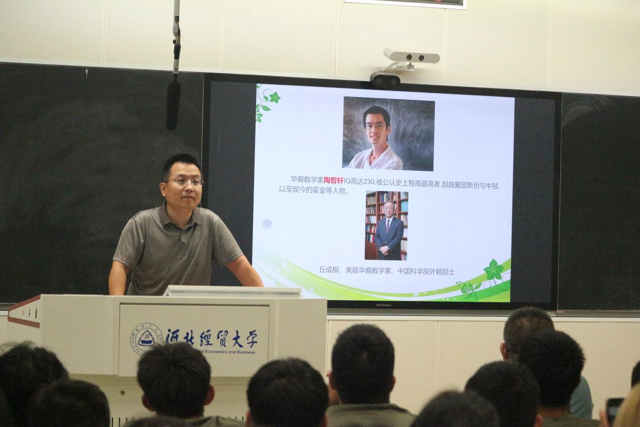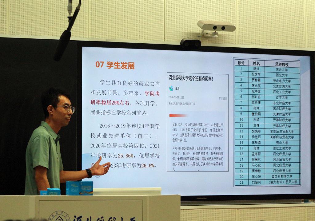 新生代表2024级数学与应用数学二班王翰林同学发言。他表示经贸将是我们梦想起航的地方,希望大家努力拓展视野、提升本领,争做一名合格的新时代大学生。