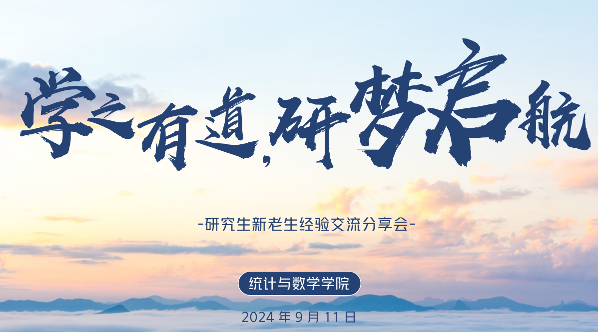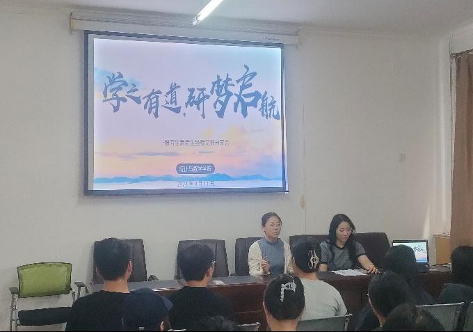 为帮助2024级新生进一步了解研究生阶段的学习、工作和生活,明确新阶段的目标和规划,增进新老生之间的情谊,9月11日下午,必赢官网研究生在四办434举办“学之有道,研梦启航”新老生经验交流分享会。本次会议由院研究生会主席李琪主持,22统计学李琪、樊祥嘉、宋盈盈、23应统崔帅作为优秀学生代表同大家分享自己的心得,辅导员赵海燕老师出席会议,24级全体研究生参加。
