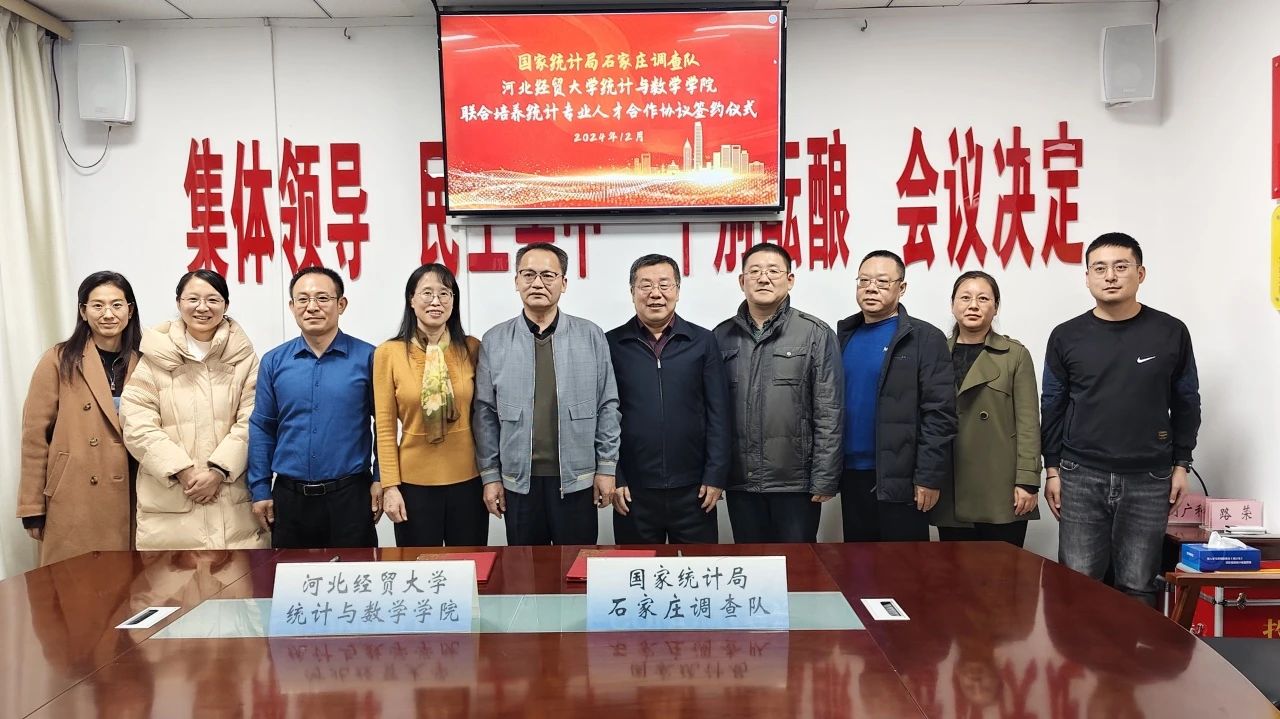 为推动国家统计调查事业与高等教育深度融合,2024年12月6日必赢国际437官网与国家统计局石家庄调查队在调查队会议室成功签署战略合作协议。石家庄调查队党组书记、队长杨卿,副队长刘广和,纪检组长赵晓彤、副队长孔利波,一级调研员聂保军以及科室负责人,必赢国际437官网党委书记祃海霞、院长闫亮、副书记路荣、副院长王玲书、就业联络员高会颖参加签约仪式。