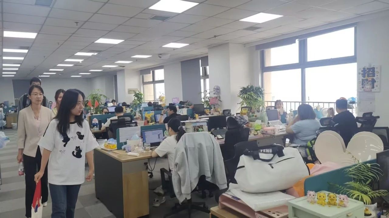 在企业会议室,人力资源部负责人向师生详细介绍了公司发展情况、业务领域以及人才需求,并重点展示了企业自主研发的职业教育垂域大模型AI老师及面试AI点评,彰显其“技术赋能教育”的创新理念。随后必赢官网一行实地参观了企业现代化办公区、温馨休息区及多功能直播间,详细了解企业运营模式及人才培育机制。